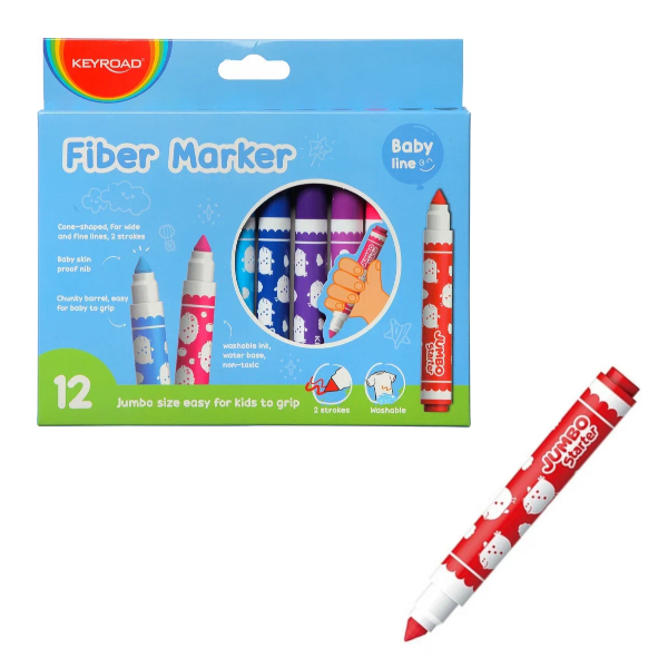 Фломастеры Keyroad "Jumbo" 12цв., смыв., утолщ., карт.уп. KR972320