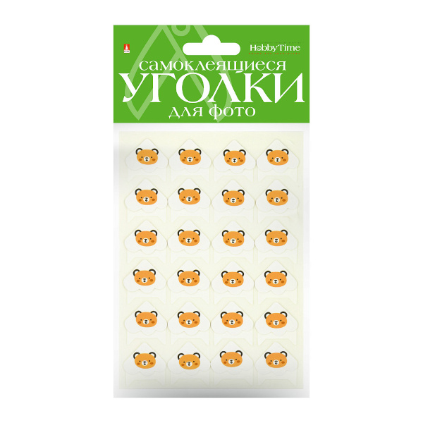 Уголки для фотоальбомов самокл. HOBBY TIME "Мишка" 1упак (24шт) серебро 2-745/19