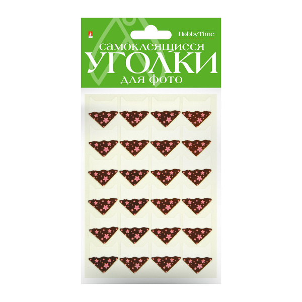 Уголки для фотоальбомов самокл. HOBBY TIME "Цветы. Коричневый" 1упак (24шт) серебро 2-745/25