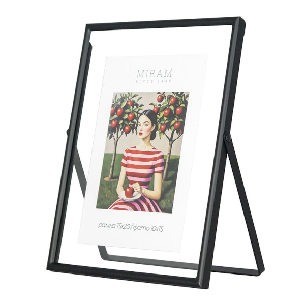 Фоторамка 15*20 металл, черный, вставка стекло, метал.ножка 6177-6 МИРАМ