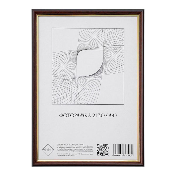 Доп. описание: Венге рамка 21x29,7 (A4) из округлого пластикового баг...
