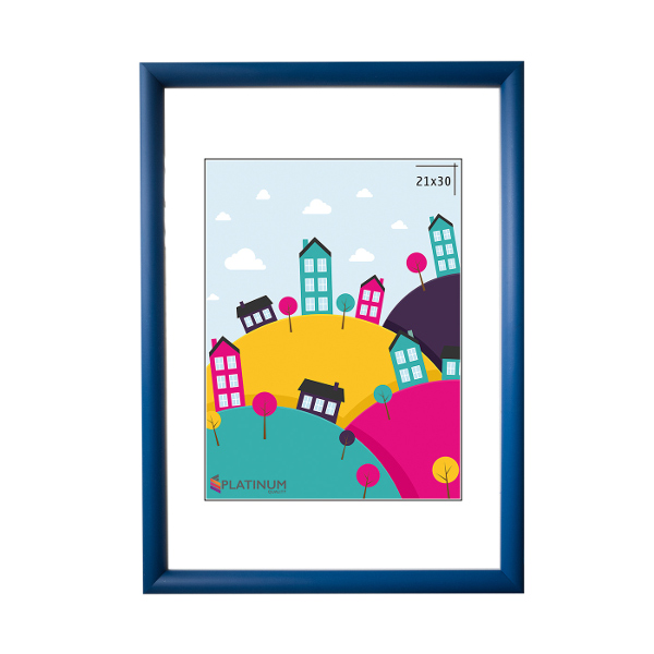 Фоторамка 21*30 пластик, багет 13мм, синий, вставка стекло, ножка "Палитра" Platinum