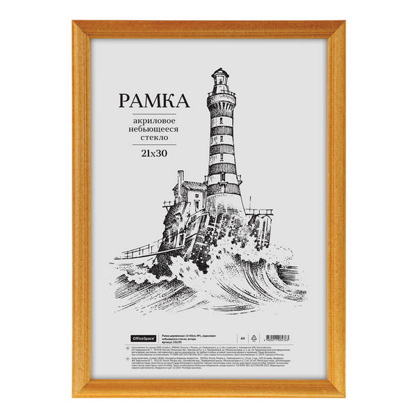 Фоторамка 21*30 МДФ, багет 17мм, янтарь, вставка акрил №1 236295 OfficeSpace