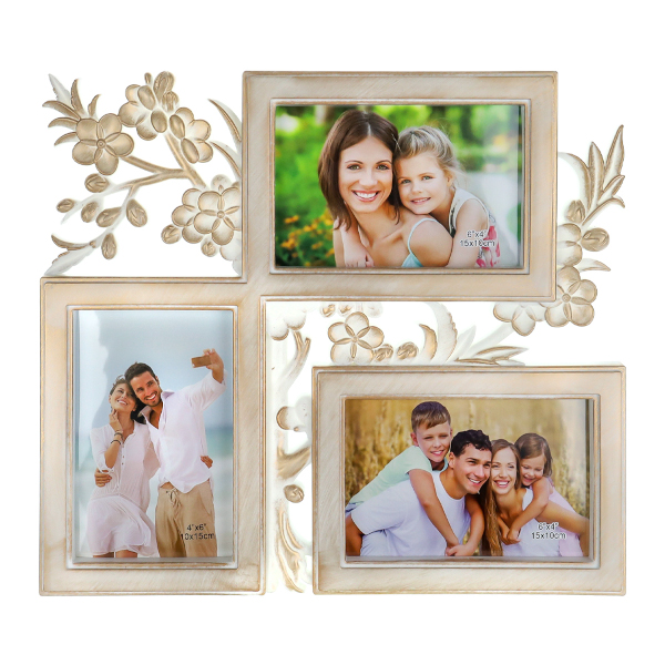 Фоторамка коллаж 3 фото, 34,4*29,7см, пластик, бежевый "Памятная дата" ФР-7238 Миленд.