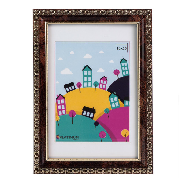 Фоторамка 10*15 пластик, багет 16мм, коричневый, вставка стекло "Камея" 982 Platinum