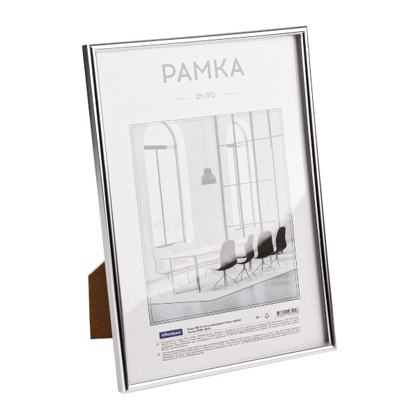 Фоторамка 21*30 ПВХ, багет 13мм, серебро, вставка пластик, ножка РПВХ_48501 OfficeSpace