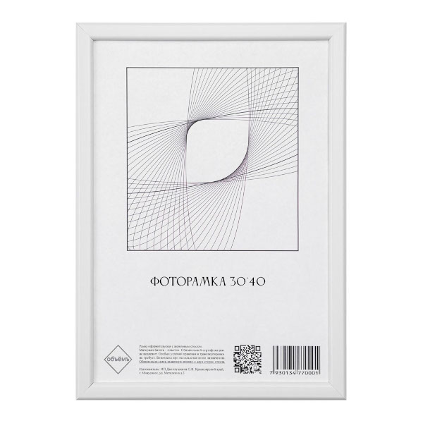 Торговая марка: Объёмъ Материал багета: Пластик Размер фото: 30*40 см Шт. в у...
