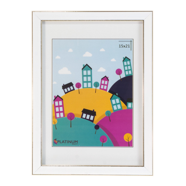 Фоторамка 15*21 пластик, багет 13мм, белый, вставка стекло, ножка "Акварель" Platinum