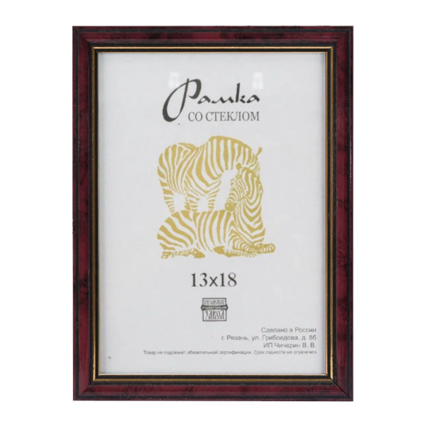 Фоторамка 13*18 пластик, багет 15мм, бордо, вставка стекло 1311 Зебра