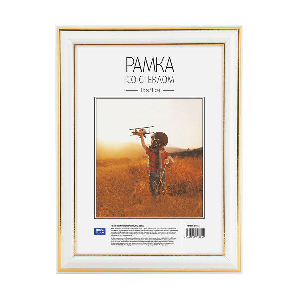 Фоторамка 15*21 пластик, багет 20мм, белый, вставка стекло, ножка №2 267551 OfficeSpace