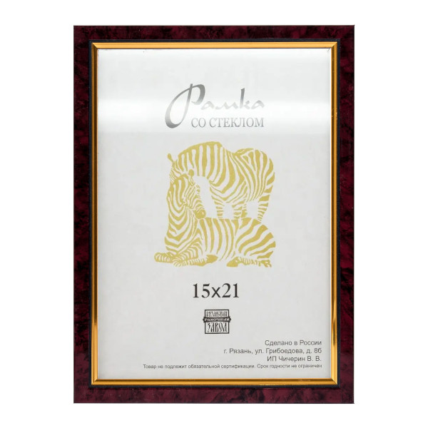 Фоторамка 15*21 пластик, багет 15мм, бордо, вставка стекло 1311/202 Зебра