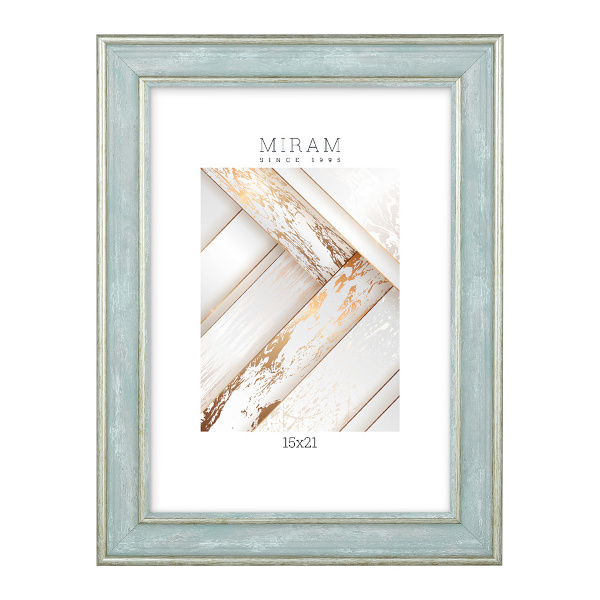 Фоторамка 15*21 пластик, багет 25мм, бело-зеленый, вставка пластик, ножка 642498-6 МИРАМ