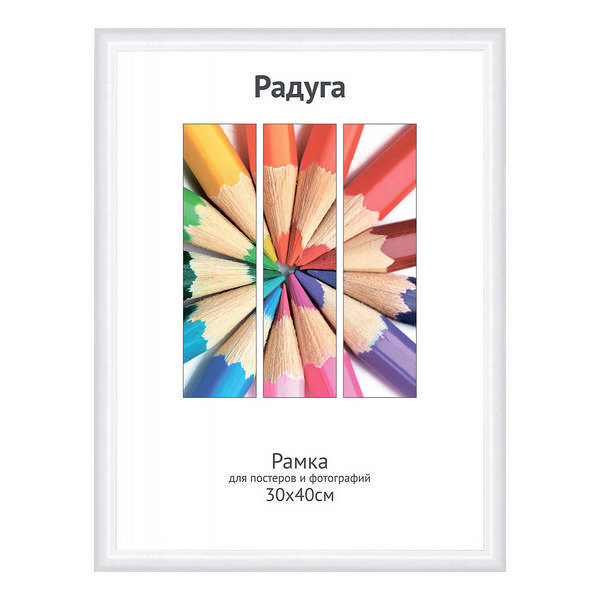 Фоторамка 30*40 пластик, багет 14мм, белый, вставка пластик 5-34693 Радуга Светосила