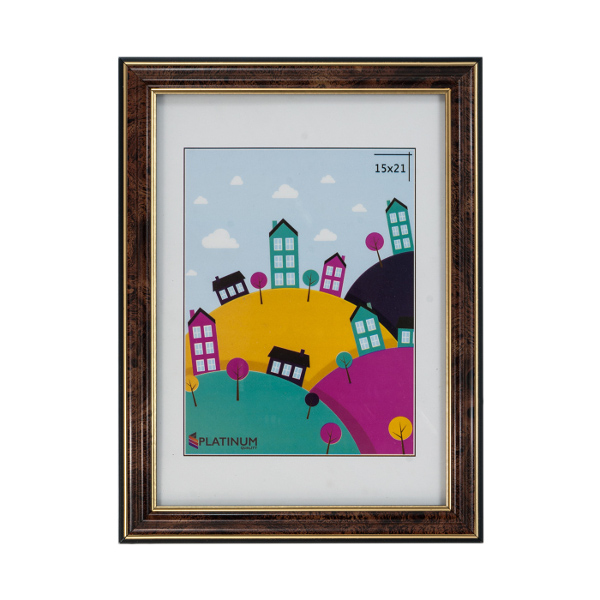 Фоторамка 15*21 пластик, багет 20мм, коричневый, вставка стекло, ножка "Офис" 282 Platinum