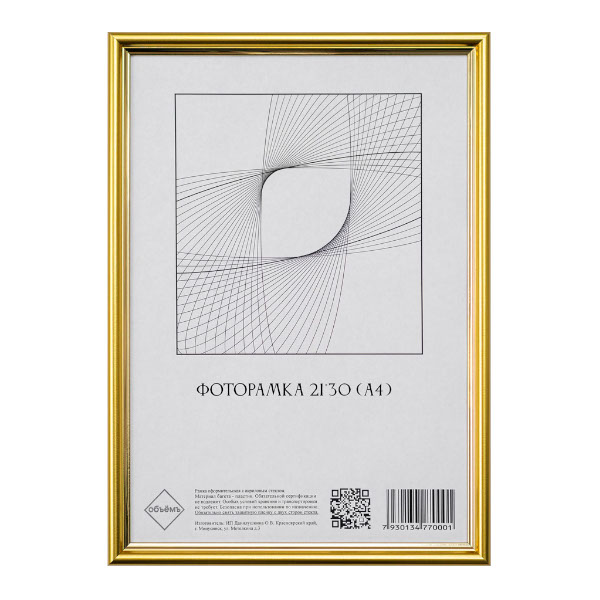 Фоторамка 21*30 пластик, багет 15мм, золото, вставка акрил РЗОЛА41315-3 Объёмъ