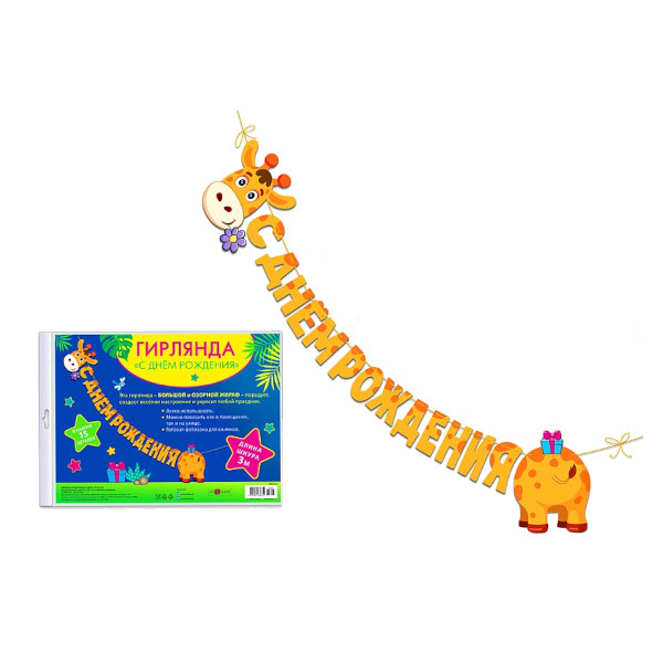 Гирлянда "С днем рождения! Жираф" 3м, 15 деталей 0565.049 Арт Дизайн