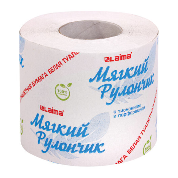 Бумага туалетная 1-слойная Laima "Мягкий рулончик" 9,2см, 51м 114737 (1шт)