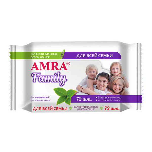 Салфетки влажные Amra "Для всей семьи" ассорти, 72шт/пач 75222