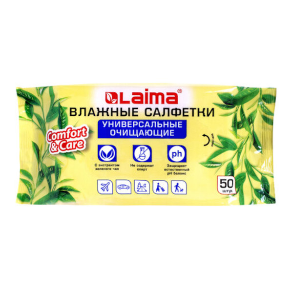 Салфетки влажные Laima универс., зеленый чай, 15*19см, 50шт/пач 128077