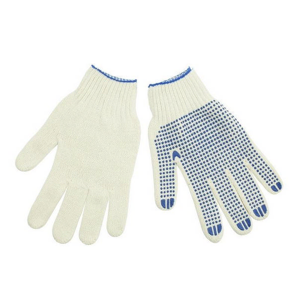 Перчатки трикотажные х/б с ПВХ (точка) 4 нити, белые ПВХ/500 Т (1 пара)