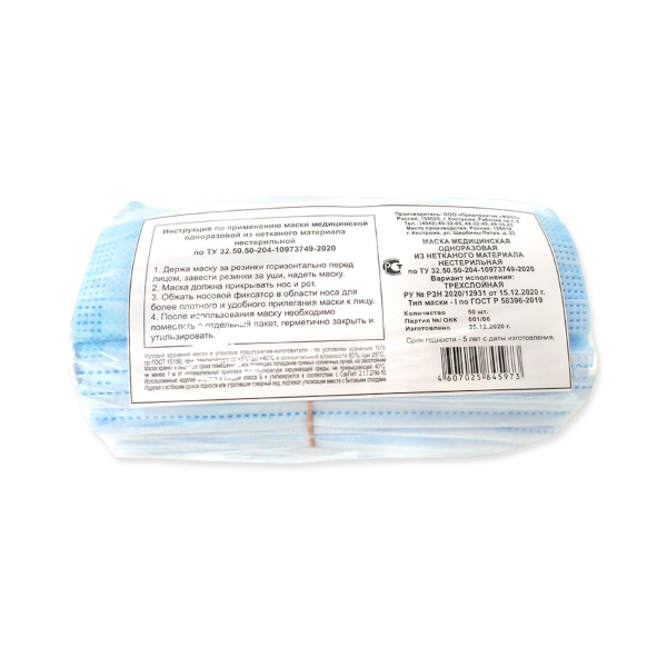 Маска медицинская одноразовая из нетканого материала нестерильная, арт. 2187, ФЭСТ (1уп-50 шт)