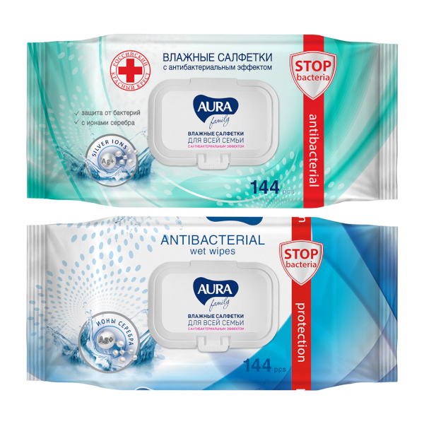 Тип: Салфетки Доп. описание: Влажные салфетки AURA Family с усовершенствованн...