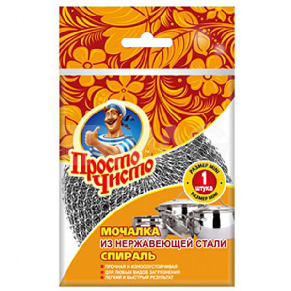 Мочалка для посуды металл (50*35мм) "ПРОСТО ЧИСТО" спираль (1шт)