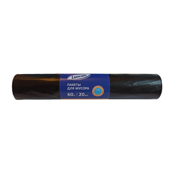 Пакеты для мусора ПВД 60л, 45мкм, 50*70см, черные, 20шт/рул 1557726 Luscan