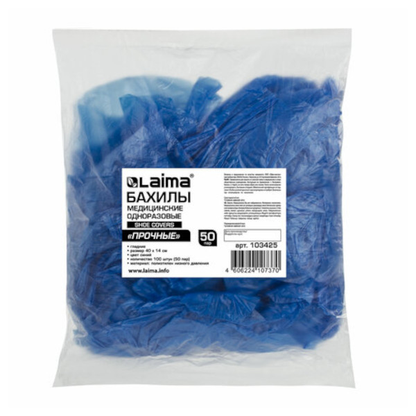 Бахилы одноразовые Laima "Прочные" 4 гр., 40*14см, 30мкм, голубые 103425 (1уп*50пар) 1уп