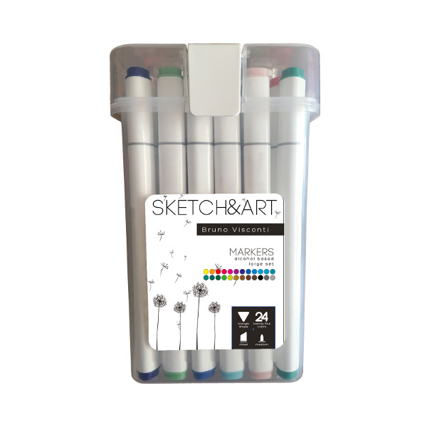 Набор маркеров Bruno Visconti ""SKETCH&ART" 24цв, двусторон., трехгран., пулевид./скошен. 22-0077