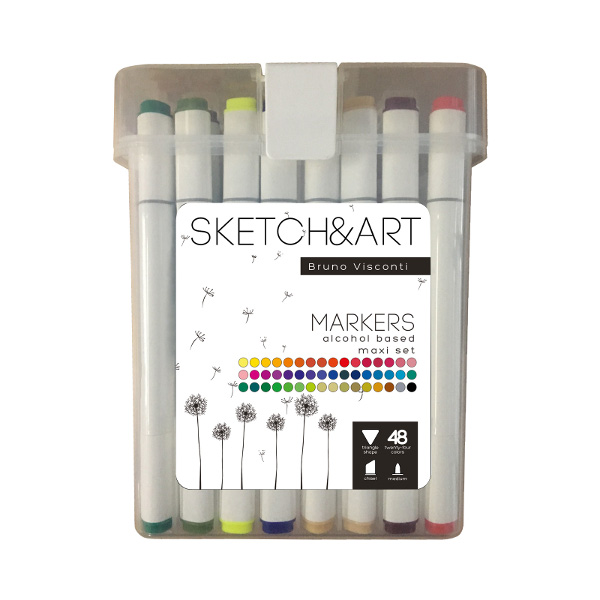 Набор маркеров Bruno Visconti ""SKETCH&ART" 48цв, двусторон., трехгран., пулевид./скошен. 22-0079