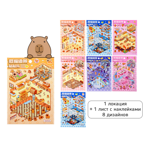 Наклейки-румбокс "Капибара" 155*225мм, поле-1л, наклейки-1л, пинцет M-20550 MAZARI ТМ