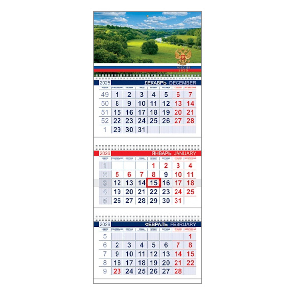 Календарь настен. кварт. 2026г "Россия" 3бл., 3гр., бегун 3Кв3гр3_09949 Hatber