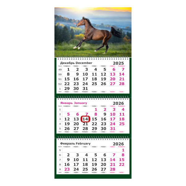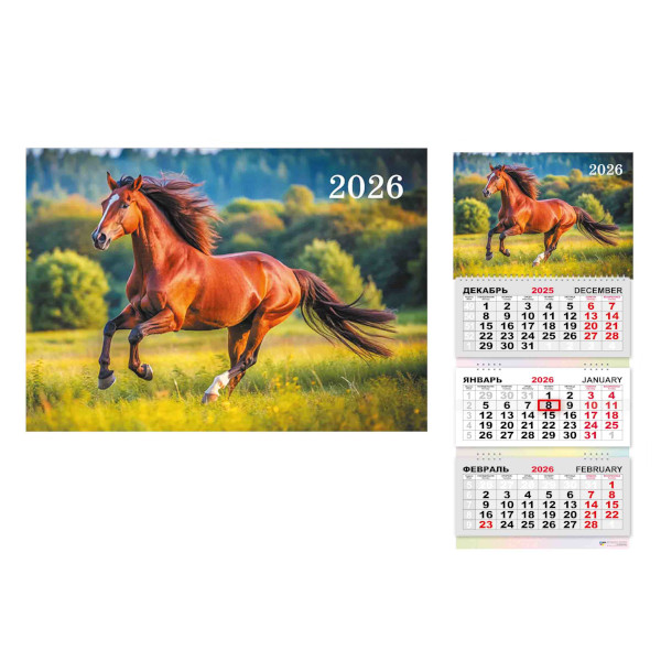 Календарь настен. кварт. 2026г "Символ Года. Лошадь на свободе" 3бл. 3гр, бегун магн 3329-6 Полином