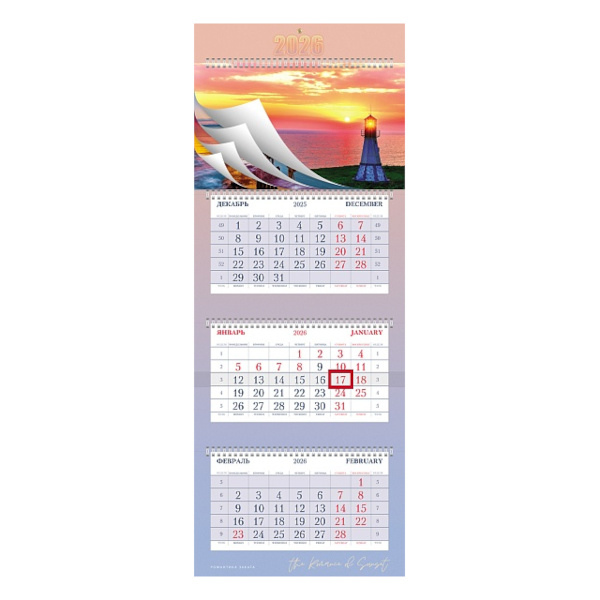 Календарь настен. кварт. 2026г "Романтика заката" 4бл., 4гр., бегун 3Кв4гр2ц_34342 Hatber