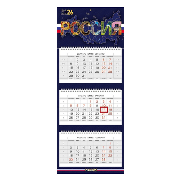 Календарь настен. кварт. 2026г "Россия" 3бл., 3гр., бегун 3Кв3гр2Фц_34454 Hatber