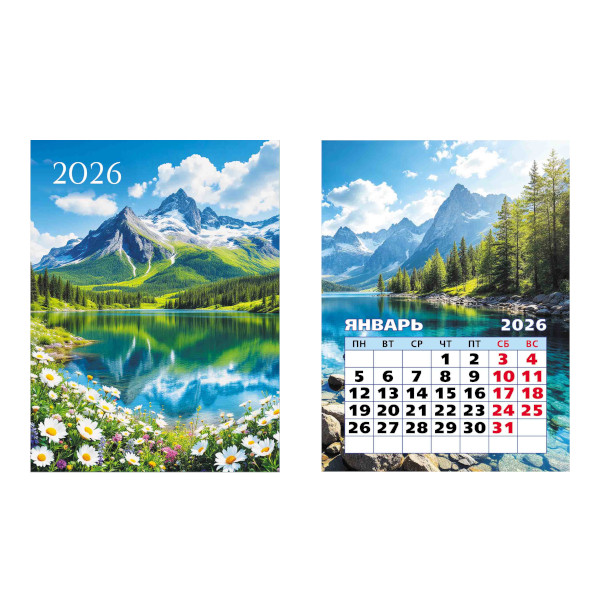 Календарь магнитный 2026г "Природа. Горное озеро" 100*135мм 9489 Квадра