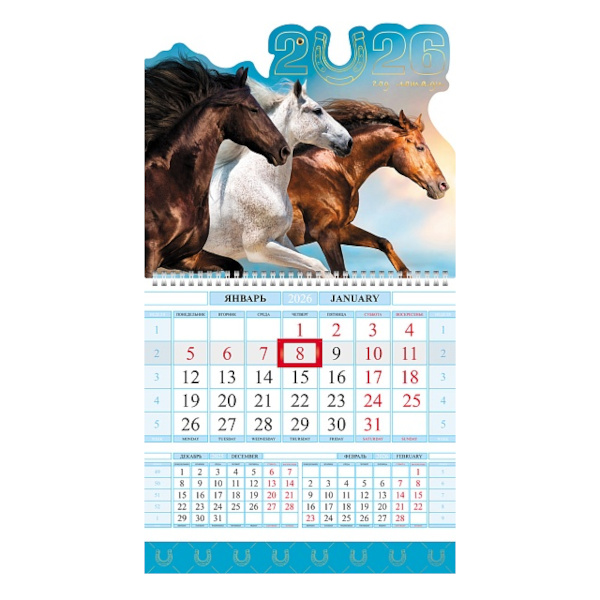 Календарь настен. кварт. 2026г "Год Лошади" 1бл., 1гр., бегун 1Кв1гр4ц_34586 Hatber