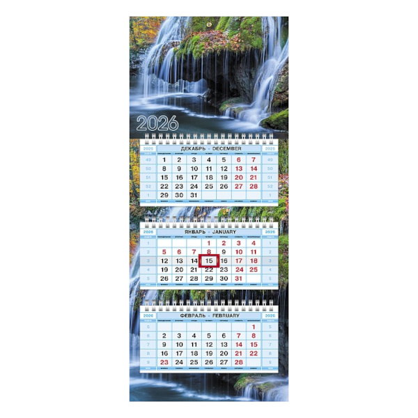 Календарь настен. кварт. 2026г "Водопад" 1бл., 1гр., бегун 3Кв1гр3_16861 Hatber
