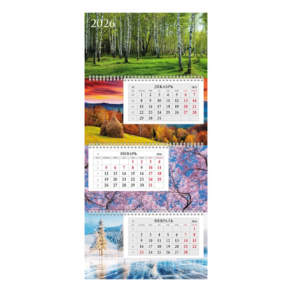 Календарь настен. кварт. 2026г "Времена года" 3бл., 3гр., бегун 3Кв3гр3ц_10245 Hatber