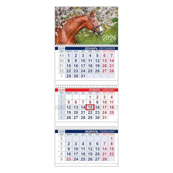 Календарь настен. кварт. 2026г "Год Лошади" 3бл., 3гр., бегун 3Кв3гр3_34346 Hatber
