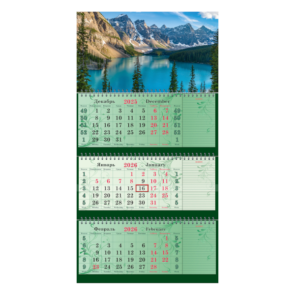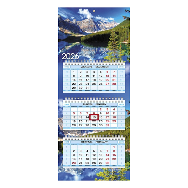 Календарь настен. кварт. 2026г "Горное озеро" 3бл. 3гр, бегун, блок для зап 2409-8 Полином