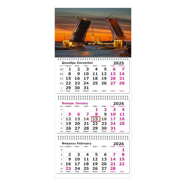Календарь настен. кварт. 2026г "Питер. Разводные мосты" 3бл. 3гр, бегун 3120-24 Полином