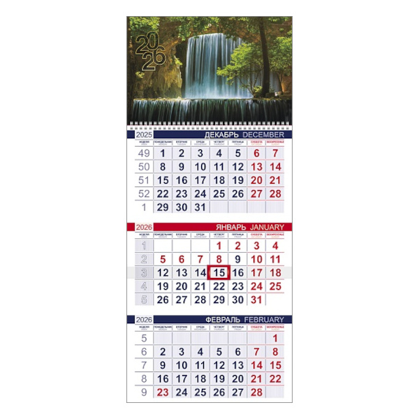 Календарь настен. кварт. 2026г "Водопад" 3бл., 3гр., бегун 3Кв3гр3_34363 Hatber