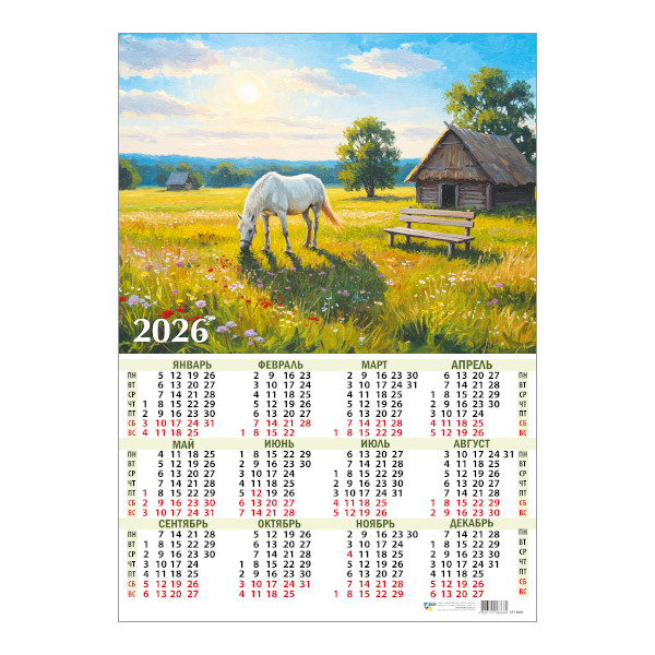 Календарь настен. лист А3 2026г "Символ года. Лошадь на выпасе" 9681 Квадра