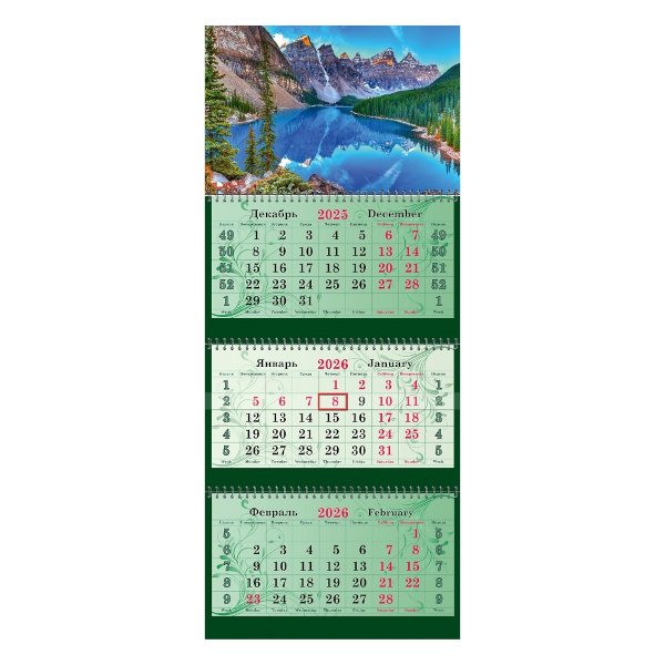 Календарь настен. кварт. 2026г "Пейзаж с синим озером" 3бл. 3гр, бегун 2406-36 Полином