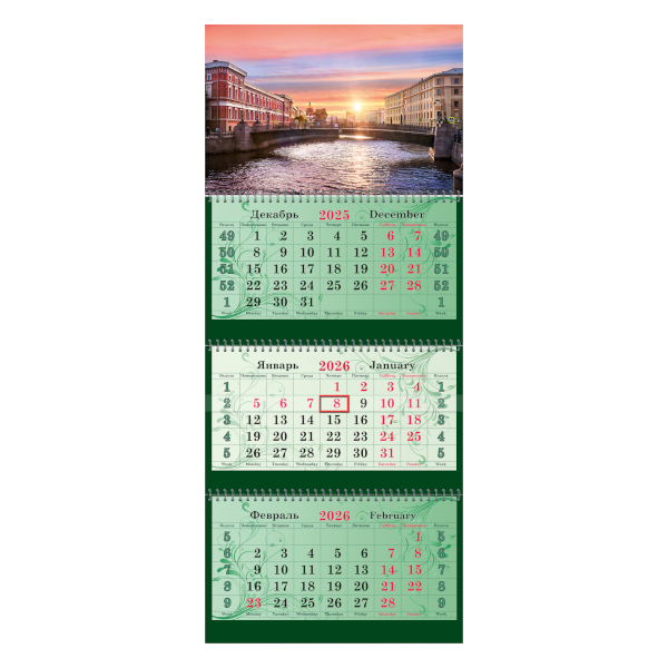 Календарь настен. кварт. 2026г "Питер. Реки и каналы" 3бл. 3гр, бегун 2406-38 Полином