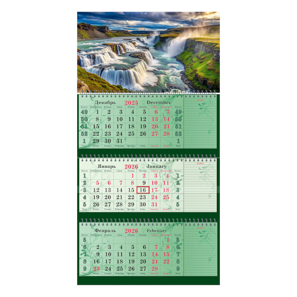 Календарь настен. кварт. 2026г "Бурный Водопад" 3бл. 3гр, бегун, блок для зап 2409-12 Полином
