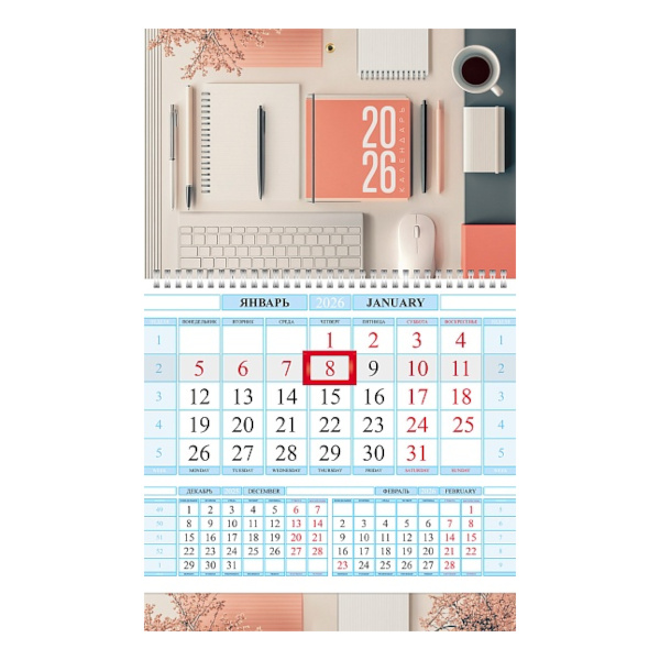 Размер: 320*840мм Тип скрепления: Гребень Торговая марка: Hatber Календарная ...