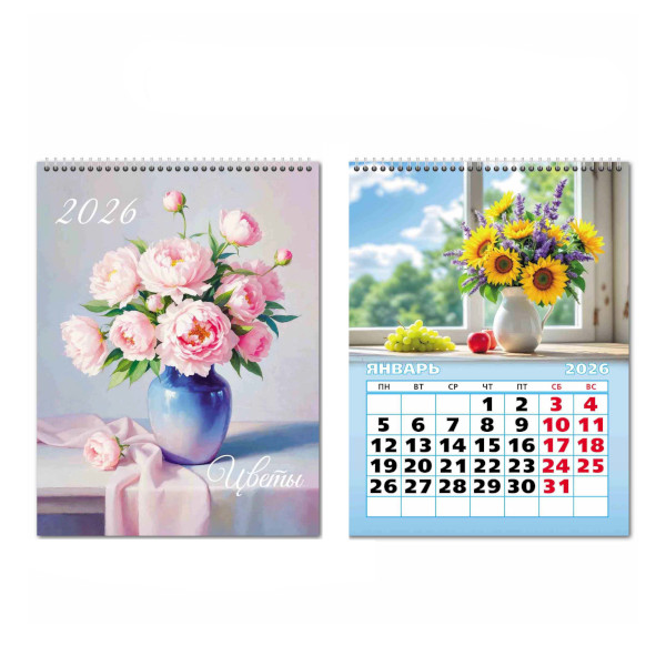 Табель-календарь 2026г "Цветы" 210*297мм 9746 Квадра